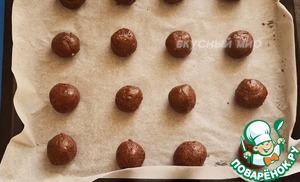 Из теста скатываем небольшие шарики. На противень с пергаментом выкладывать шарики на расстоянии друг от друга. Из этого количества теста у меня получается 16 печенюшек. Выпекать в духовке при 180 градусах 20-25 минут.