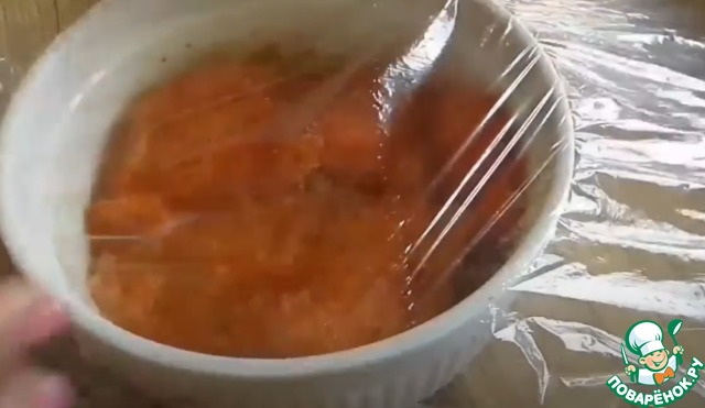 Накрыть пищевой пленкой, и поставить в холодильник на одни, а лучше на двое суток.