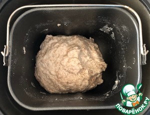 Замешивает тесто вручную и даем ему постоять в теплом месте около 1 часа. Используем теплую воду (30-35С по возможности). Или можно его замесить в хлебопечке (как в моем случае) в режиме замеса. Я позволяю замешивать тесто в течении 7-10 минут и выключаю машину. За это время, хлебопечка нагревает дополнительно тесто, что является преимуществом, если в комнате холодно. И оставляем тесто на час в выключенной машине.