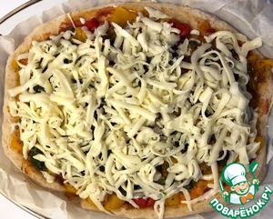 Посыпаем сыром. Продолжаем выпекать еще 10 минут, чтобы сыр расплавился.