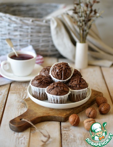 Шоколадной выпечки много не бывает! На просторах нашего сайта, наверняка найдется довольно близкий к этому рецепт, но выставляю в надежде, что пригодится молоденькой хозяюшке, рецепт очень легкий и простой, из серии "все смешал и готово!", покорил своей простотой. В оригинале был целым пирогом. Огромная благодарность Деборе за рецепт.