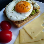 Очень быстрый, сытный и полезный завтрак. Прекрасное сочетание кремового нежного авокадо и яичницы-глазуньи и минимум временных затрат (жаль только на авокадо цена кусается)).