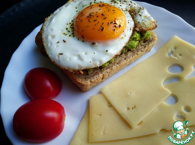 Выложите на тост пасту из авокадо и сверху положите глазунью из одного яйца.