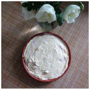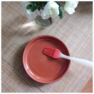 Форму смазала по минимуму оливковым маслом. Я делаю запеканку на 1 порцию и возьму формочку соответственно подходящую под количество творожной смеси. Я возьму глиняную тарелку D-14 см и высотой-2 см, которую можно поставить в духовку.