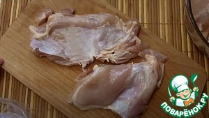 4) Куриное бедро можно нарезать на несколько частей, затем отбиваем куриное бедро.