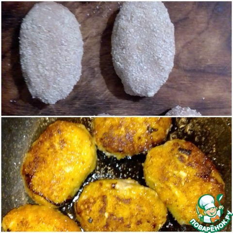 Запанировать в сухарях. Удобнее и правильно приготовить необходимое количество для сковороды, как правило - 5-6 шт..