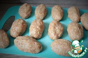 Фарш разделить на 12-13 одинаковых частей, сформовать котлеты.