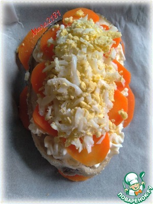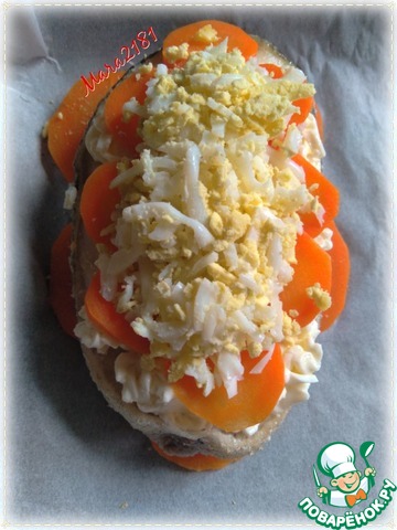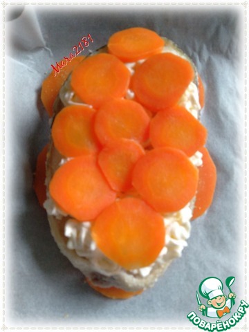 Стейк трески запекается между слоями моркови в сочетании с плавленным сыром, отварным яйцом, сладким луком и петрушкой. Полноценное горячее блюдо порадует Вас своей сочностью и нежностью, а также послужит достойным украшением праздничного стола. Угощайтесь с удовольствием, дорогие Поварята!