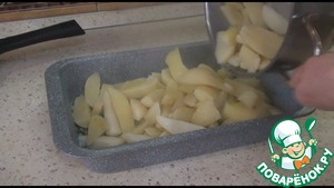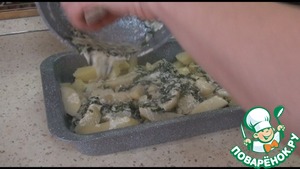 На картофель выкладываем оставшуюся заливку, равномерно распределим её.