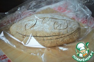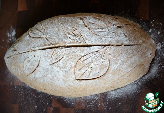 Сформовать хлеб, припудрить мукой и острым лезвием нанести надрезы.