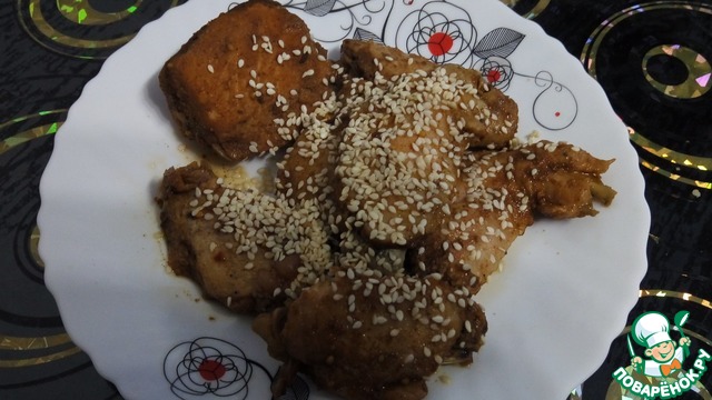 Единственное, в маринад забыла сразу добавить кунжут, поэтому кунжутом посыпала уже готовое блюдо