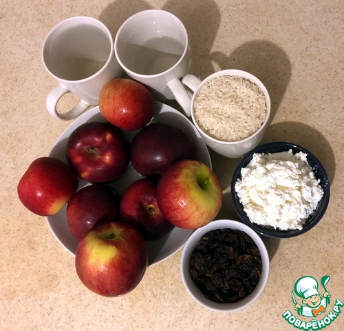 Ингредиенты для «Отварной рис с яблоками и творогом»:
