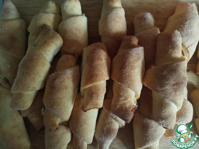Посыпьте рогалики сахарной пудрой, пока они горячие, и подавайте к чаю.