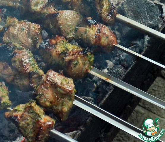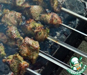 Жарить на седых углях. Следите чтобы маринад не горел.