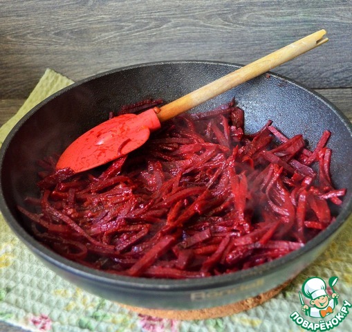 Также почистить и нарезать тонкой соломкой свёклу.