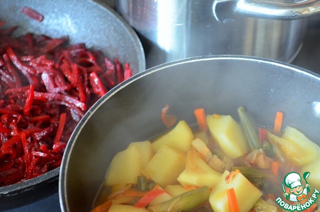 Рецепт «Борщ с зелёной фасолью»: