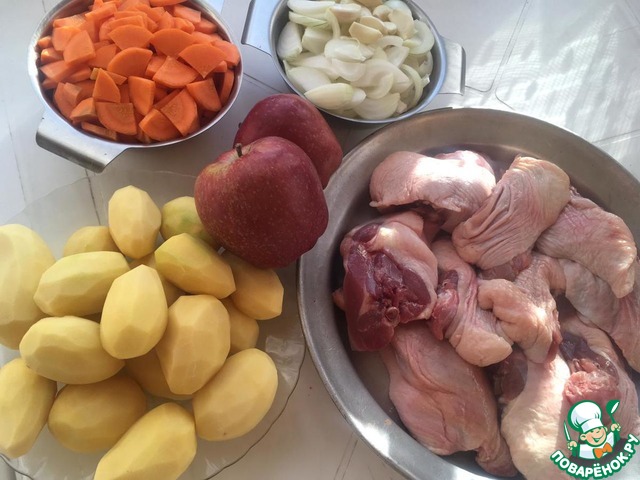 Ингредиенты для «Утка с овощами и яблоками в казане»: