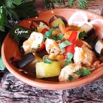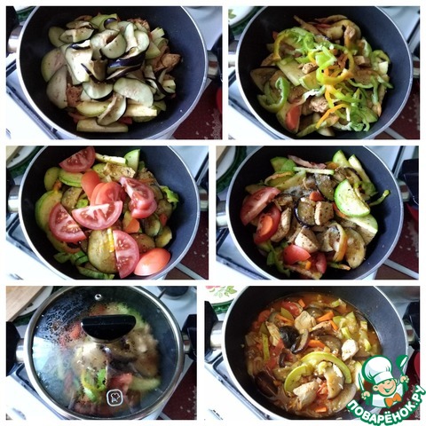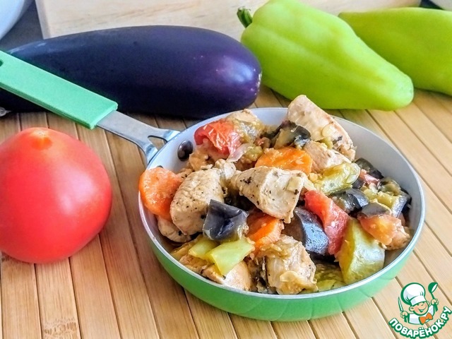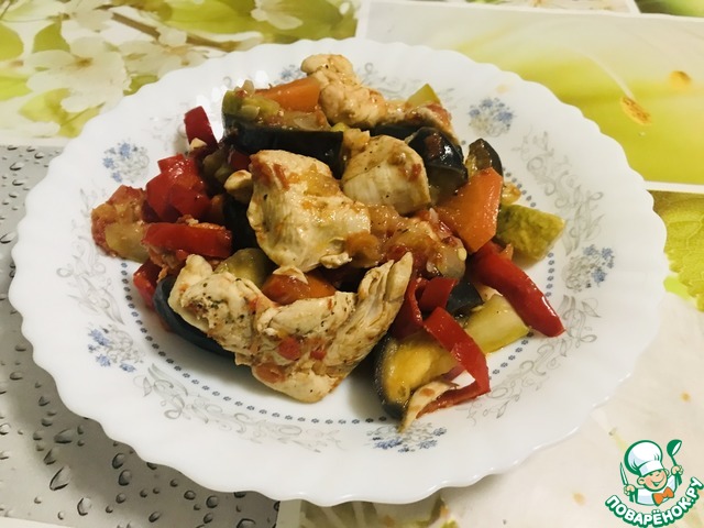 Диетическое овощное рагу с куриным филе и пряным вкусом.