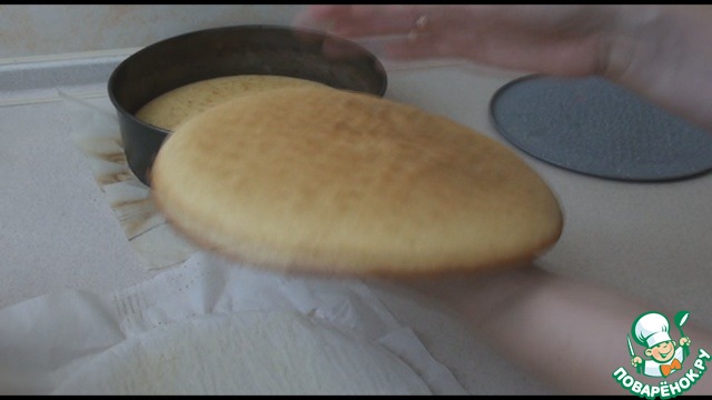 Вынимаем коржи из духовки, снимаем форму и оставим их на 5 минут немного остыть.
