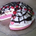 Режем на кусочки и зовем всех пить чай. Торт бесподобный, с ярко выраженным клубничным вкусом! Хорошо держит форму, можно приготовить как для домашнего чаепития так и для прихода гостей. Приятного аппетита!