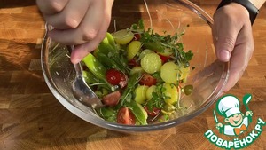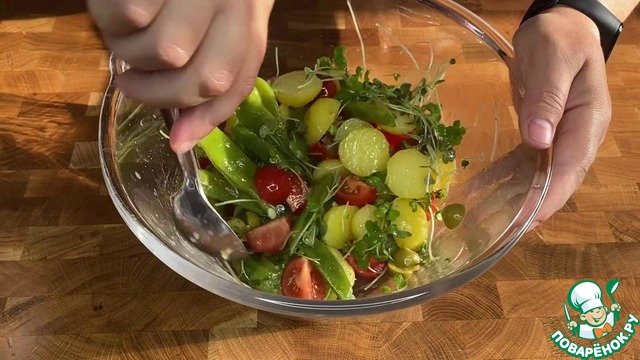 Соединить все ингредиенты, добавить микрозелень и перемешать.