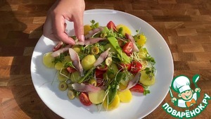 Рецепт «Салат из сельди, овощей и микрозелени»: