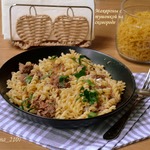 Ингредиенты для «Макароны с тушенкой в сковороде»: