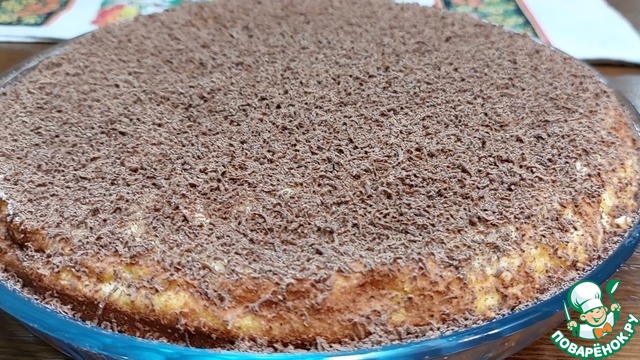 Аккуратно снимаем пергаментную бумагу и обильно посыпаем пирог тёртым шоколадом. Творожный пирог "наоборот" готов! Приятного аппетита!