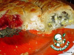 Пирог из слоеного теста с начинкой ассорти