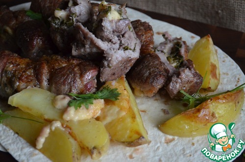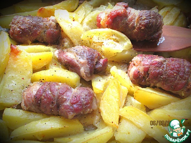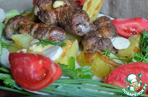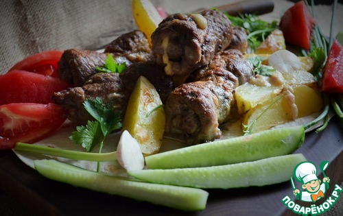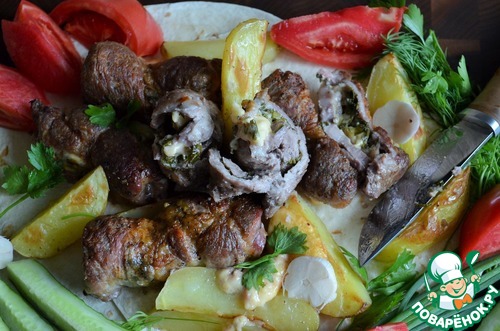 Вкусное горячее, приготовьте, порадуйте близких. В наших планах был обед во дворе, рулетики на решётке мангала, но погода подвела..., хотя и в духовке получилось бесподобно. Рекомендую.