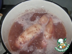 Кальмары отварить 5 минут в кипящей воде и подсоленной.