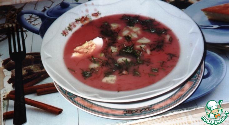 Холодный борщ "Шалтибаршчай" - классика литовской кухни. Национальное блюдо нескольких восточноевропейских кухонь: белорусской; русской; литовской; латышской; украинской; польской. Как-то давно-давно, ещё при Советском Союзе мы ездили по путёвке по Прибалтийским республикам. Вот этот рецепт так и остался в памяти и появляется это блюдо каждый год на столе летом в жару.
