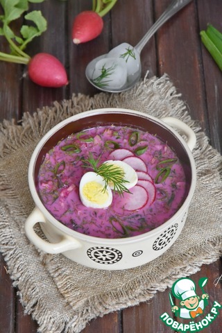 Мне очень жаль добавлять воду или сливки в кефир. Я варю очищенные свеклу и картошку (для насыщения крахмалом отвара из свеклы). Этим отваром разбавляю кефир. Картошку не кладу, далее, как у всех, но у меня вкуснее!