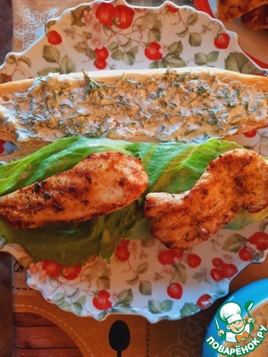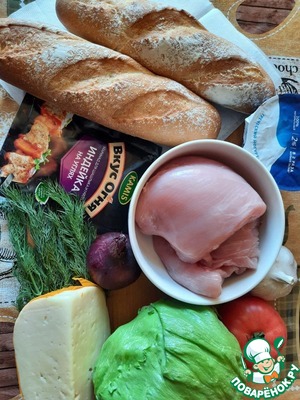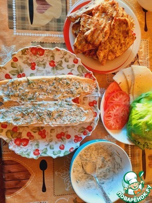 - Багет (я покупаю мини-багеты, но можно заменить булочками для бургера) — 2 шт