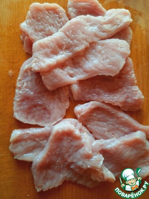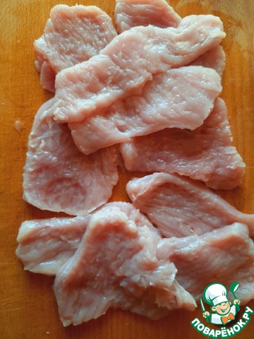 Нарежьте филе небольшими кусочками и слегка отбейте.