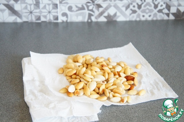 Если миндаль, как у меня, то залейте его на 5 минут кипятком.