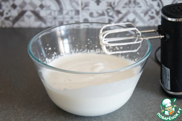 Взбейте яйца с сахаром до густой белой пены. Взбивайте примерно 5-7 минут.