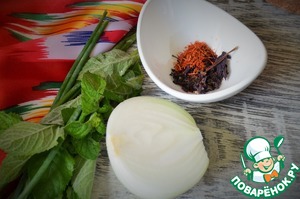 Оставшийся лук нарезать перьями, зелень нарубить. Добавить всё в казан, проварить пару минут, посолить по вкусу, убрать с огня. Именно недоваренный, хрустящий лук в шурпе - один из секретных моментов приготовления шурпы.