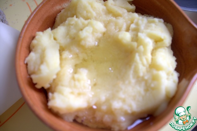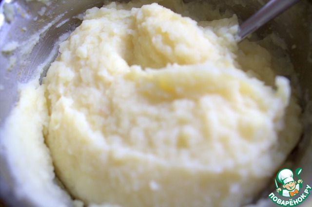 Для начинки взяла обычное пюре на молоке с маслом, подсоленное. Начинка должна остыть. Если каша, то тоже остывшая.