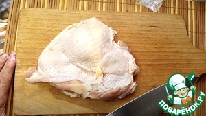 1) Подготавливаем куриные бедра, подрезаем и тд…