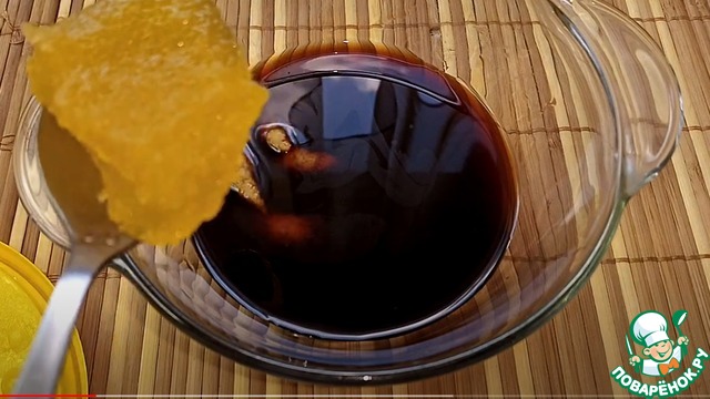 4) В отдельной тарелке делаем маринад, из соевого соуса, мёда и горчицы.