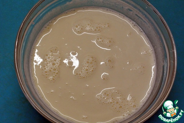 Замесить тесто для блинчиков. Я смешала все продукты и взбила погружным блендером.