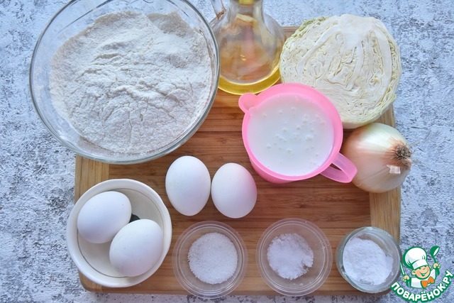 Ингредиенты для «Еврейский заливной пирог на кефире»:
