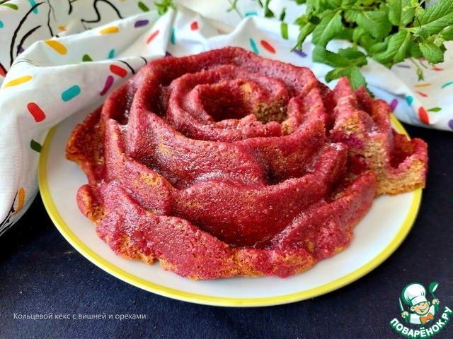 Рецепт «Кольцевой кекс с вишней и орехами»: