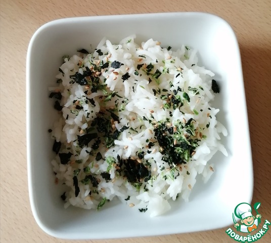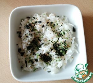 Оказалось что нори у меня нет и я посыпала рис другими водорослями, но на вкусе это не отразилось, только добавился вкус кунжута. -