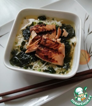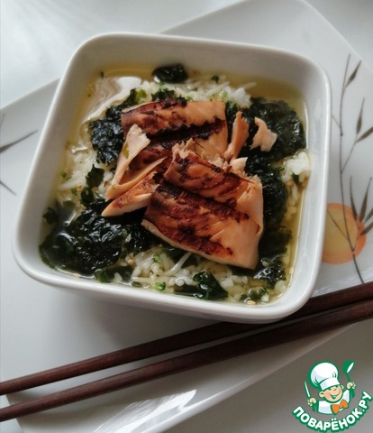 Если есть опасения как поведёт себя чай в этом блюде, то даже не беспокойтесь, будет очень вкусный бульон, насыщенный вкусом рыбы, риса и водорослей.