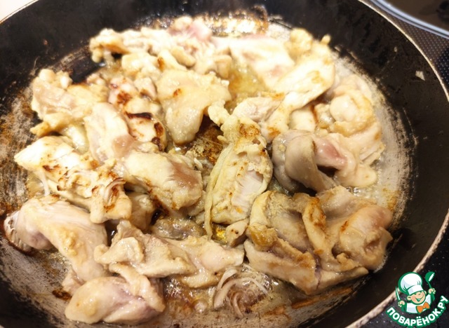- Бедро куриное (отделить кости и кожу, нужна только мякоть) — 500 г