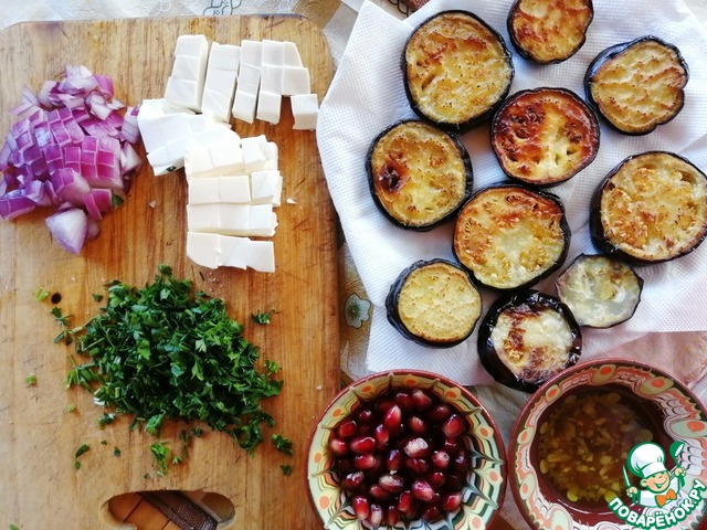 Рецепт «Салат с баклажанами, фетой и гранатом»: