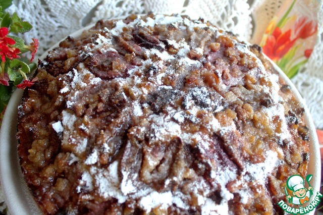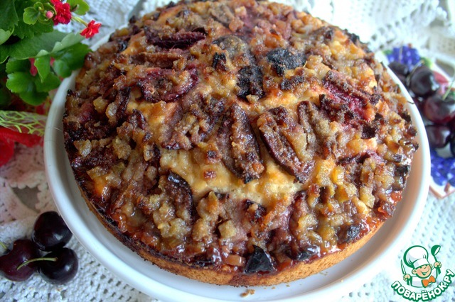 Простой, доступный пирог к послеобеденному чаепитию. Конечно, в сезон берём сливы и ревень свежие, я взяла из заморозки. Форма диаметром-24 см, высота пирога в центре-5 см