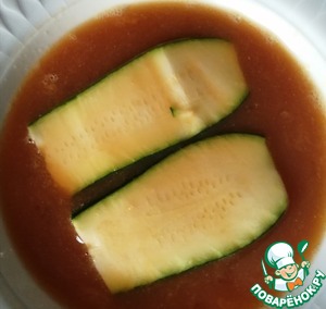 Окунаем цуккини в яичную смесь. -